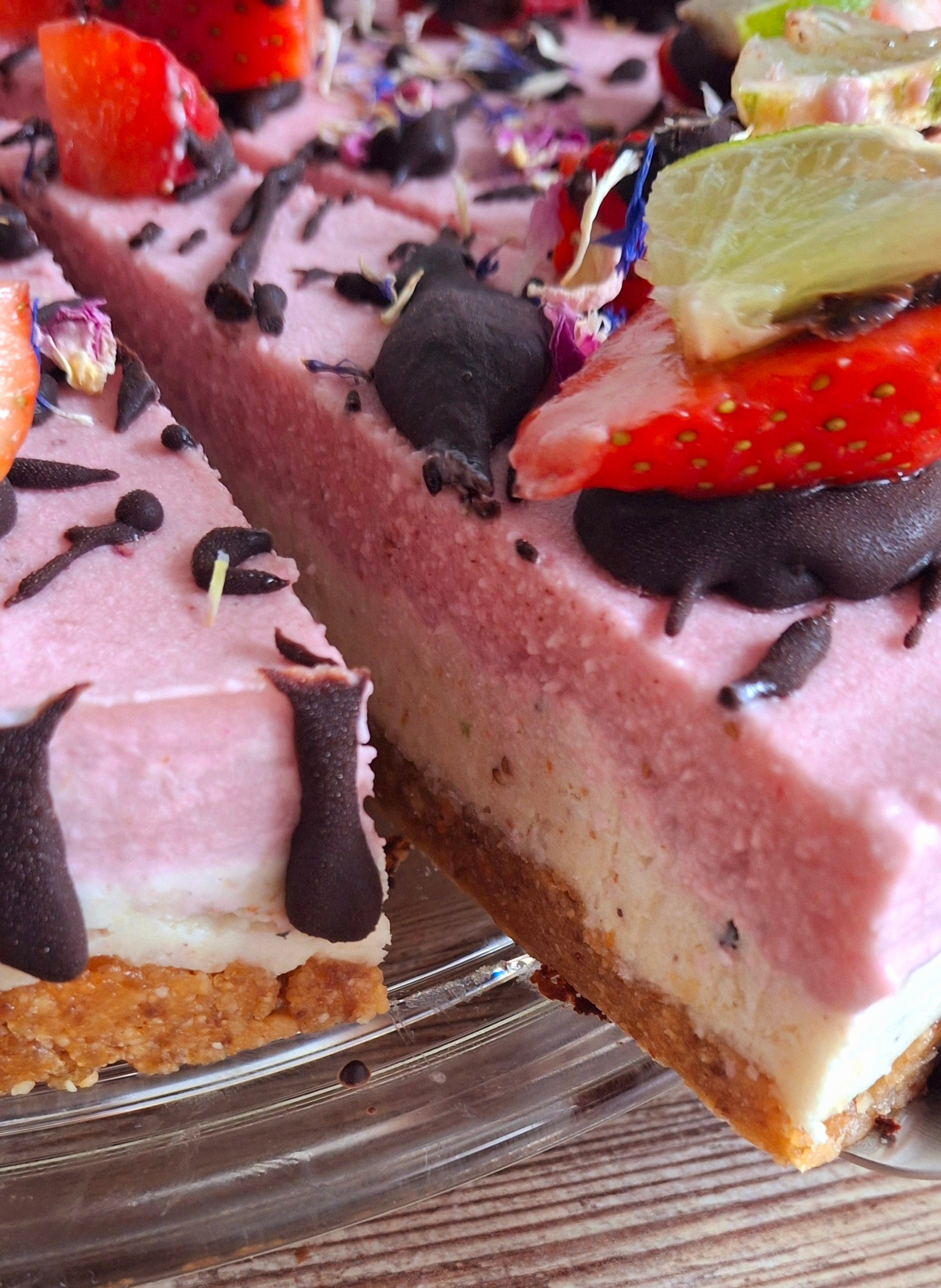 Ein himmlisch cremiger, veganer Rohkostkuchen mit sommerlicher Frische.